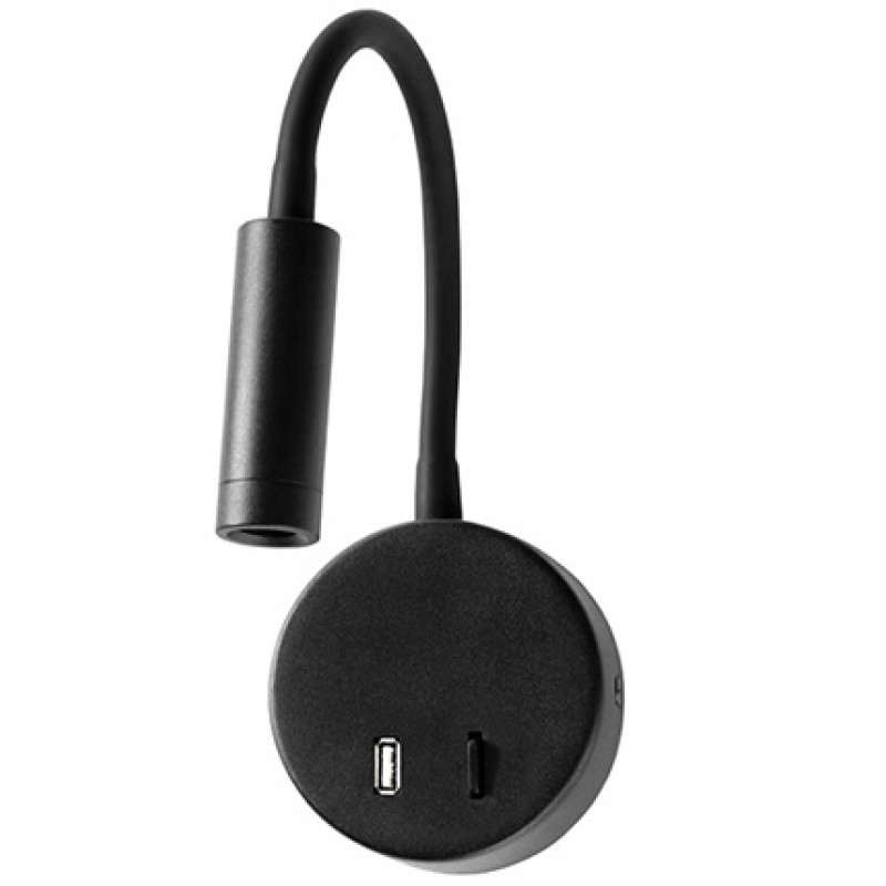 Φωτιστικό τοίχου απλίκα LED 3W 230V με εύκαμπτο spiral 30cm, θύρα φόρτισης USB και διακόπτη On-Off.