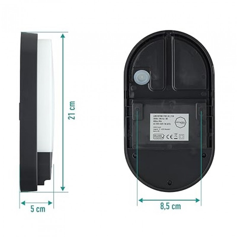 Φωτιστικό απλίκα τοίχου LED με ενσωματωμένο ανιχνευτή κίνησης στεγανό IP54.