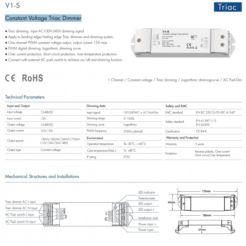 Νέο! -20% Dimmer AC Triac RF V1-S1 1 Channel 195124