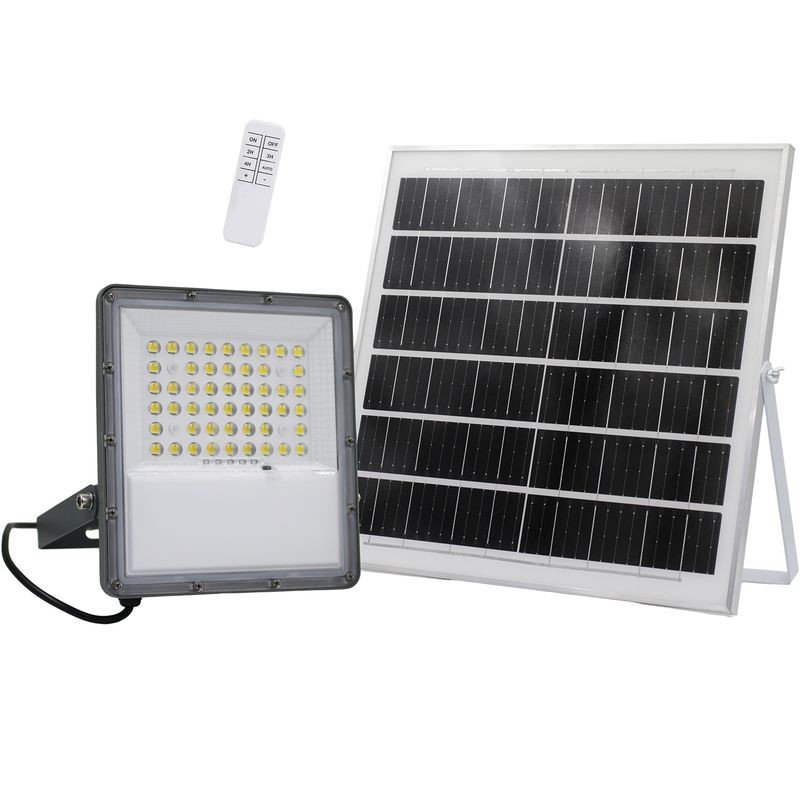 Ηλιακός προβολέας LED 50W 600lm με φωτοβολταϊκό πάνελ και ασύρματο χειριστήριο στεγανός IP65.