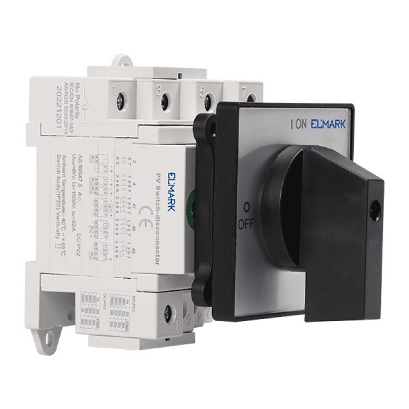 The DC switch is mounted between the solar panels and the inverter and is intended to isolate the PV array during installation or subsequent maintenance.
