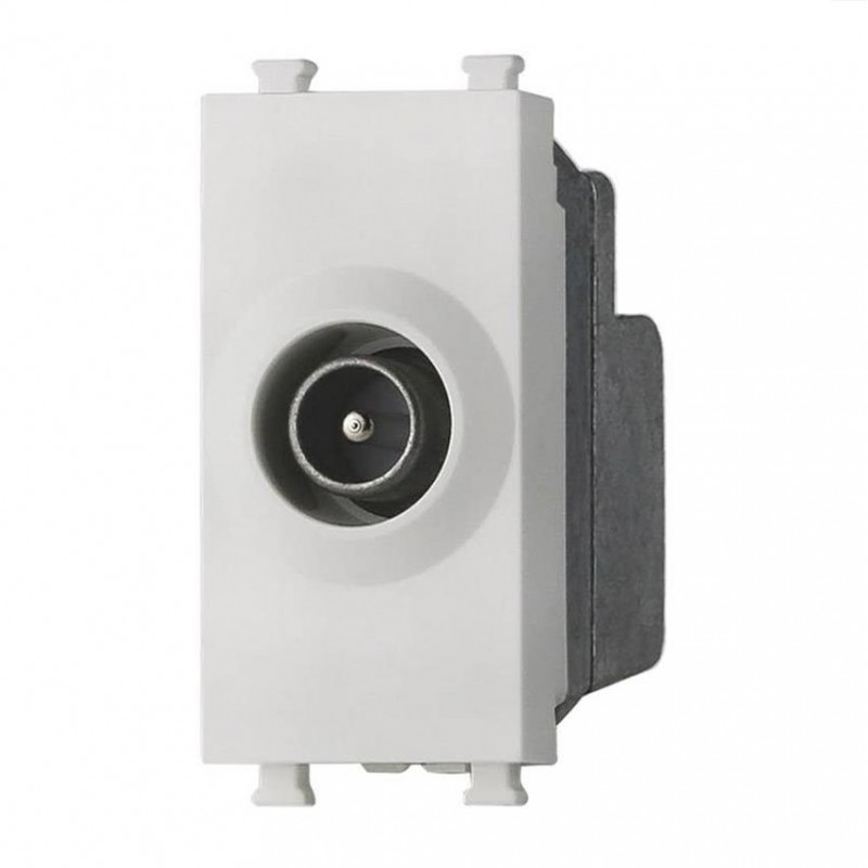 Πρίζα τηλεόρασης τερματική 1P σε λευκό χρώμα της σειράς Lineme INO.Απορρόφηση κατανομής 1dB.
