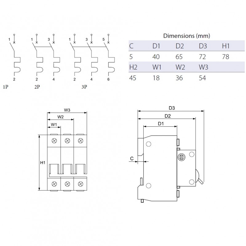 - Ικανότητα διακοπής EN 60898: 6kA