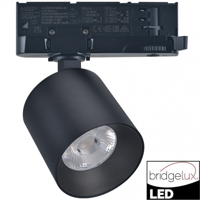 Φωτιστικό LED Ράγας 20W 230V 2400lm 36° 3000K Θερμό Φως 4 Καλωδίων Μαύρο 25-420001