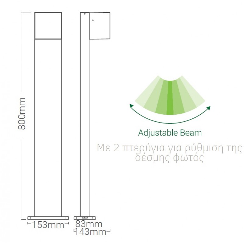 Με 2 πτερύγια για ρύθμιση δέσμης φωτός.